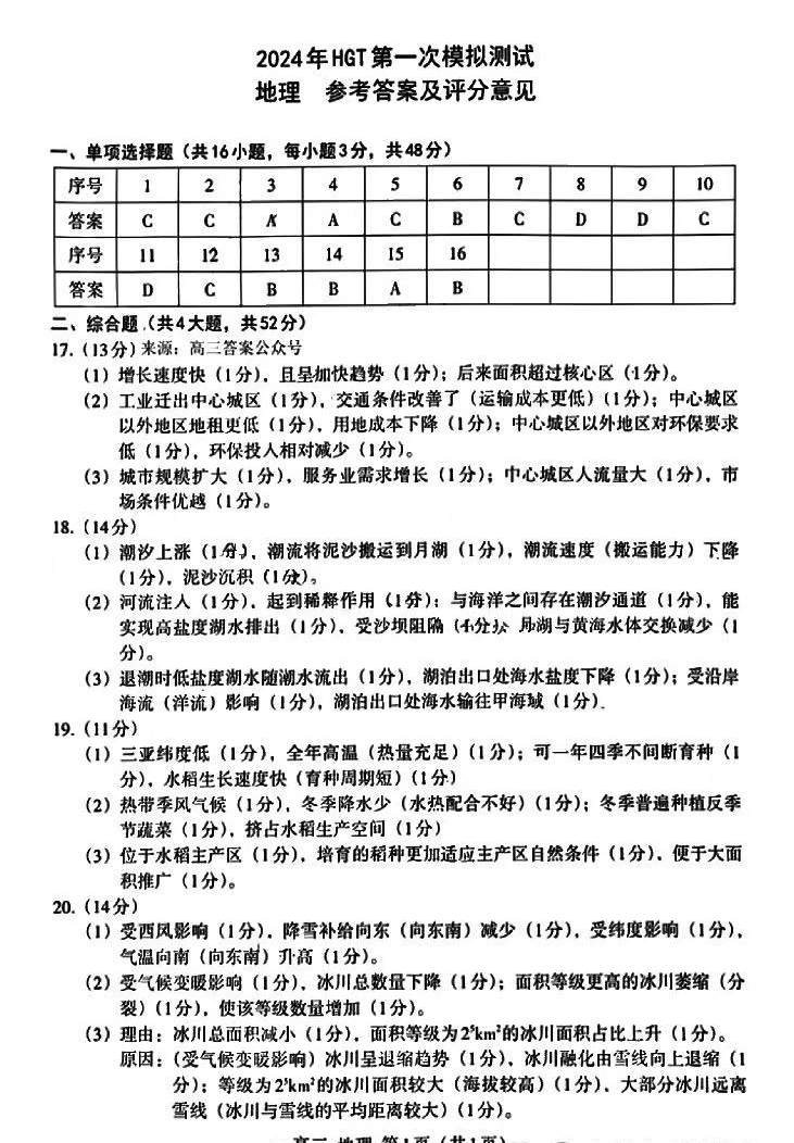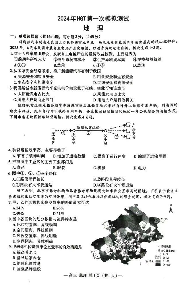 九、2024南昌一模地理试卷答案