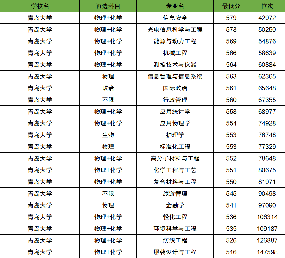 2、青岛大学:最低分数线是服装设计与工程专业的516分。