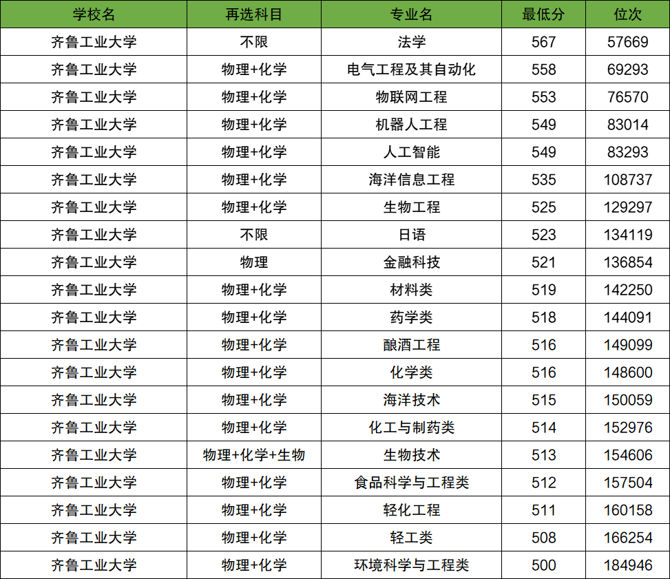 15、齐鲁工业大学:最低分数线是环境科学与工程类专业的500分。