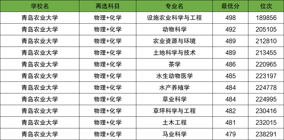 13、青岛农业大学:最低分数线是马业科学专业的479分。
