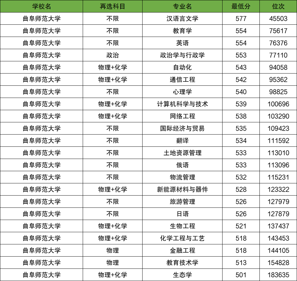 5、曲阜师范大学:最低分数线是生态学专业的501分。