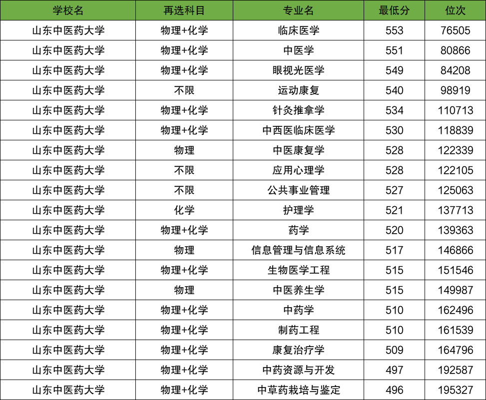 11、山东中医药大学:最低分数线是中草药栽培与鉴定专业的496分。