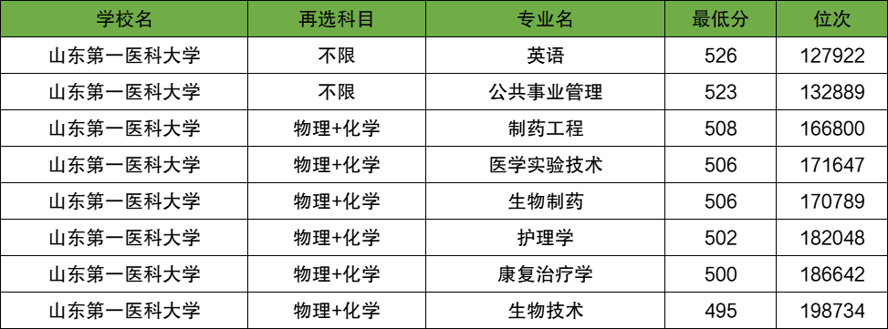 16、山东第一医科大学:最低分数线是生物技术专业的495分。