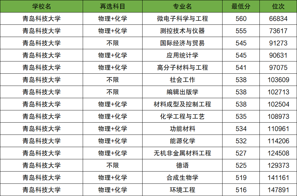 3、青岛科技大学:最低分数线是环境工程专业的516分。