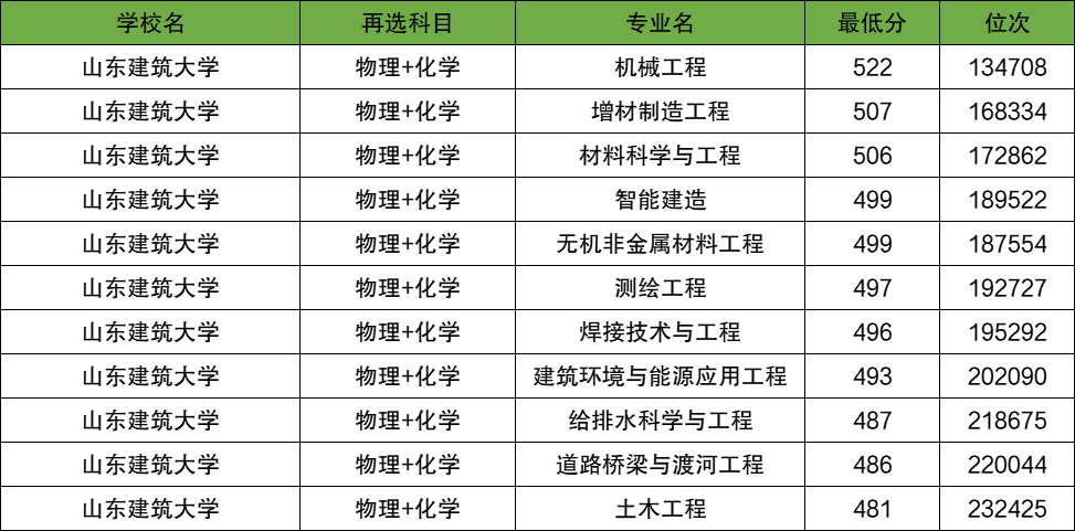 12、山东建筑大学:最低分数线是土木工程专业的481分。