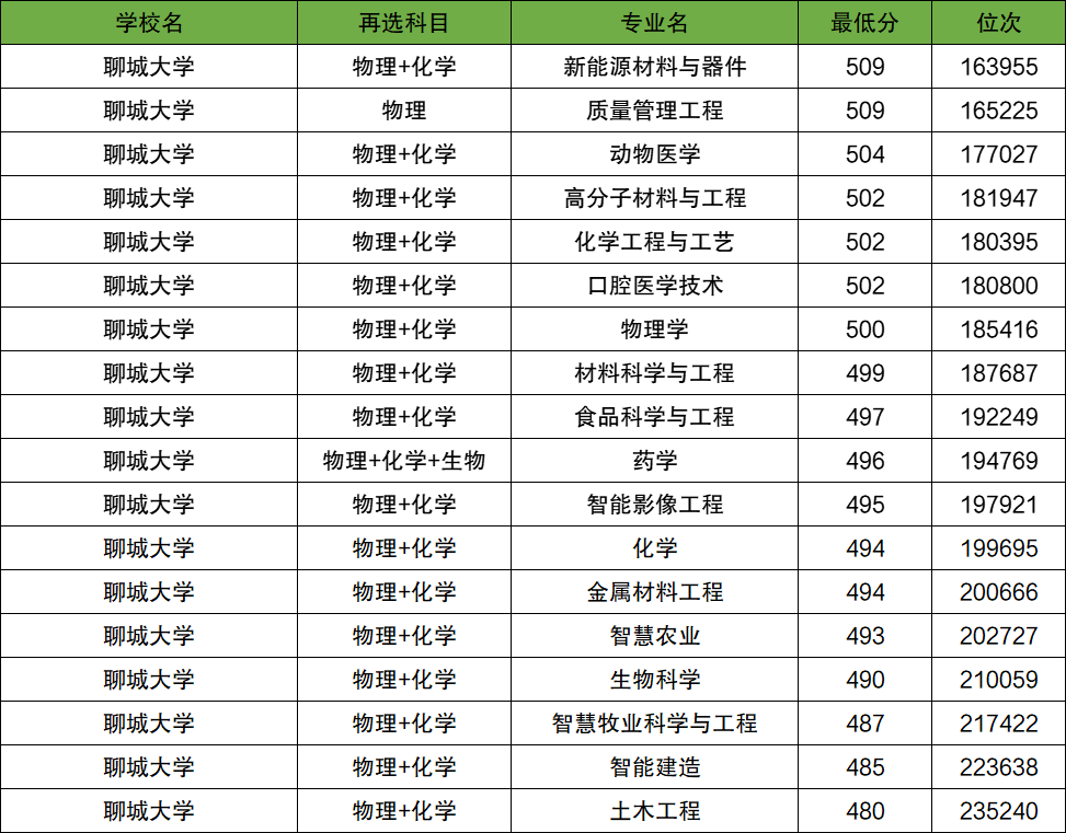 14、聊城大学:最低分数线是土木工程专业的480分。