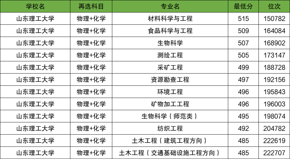 8、山东理工大学:最低分数线是土木工程专业的485分。