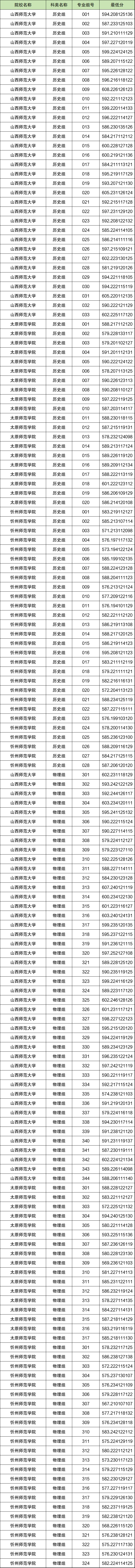 历史类:001专业组633分、002专业组630分、004专业组612分、003专业组597分