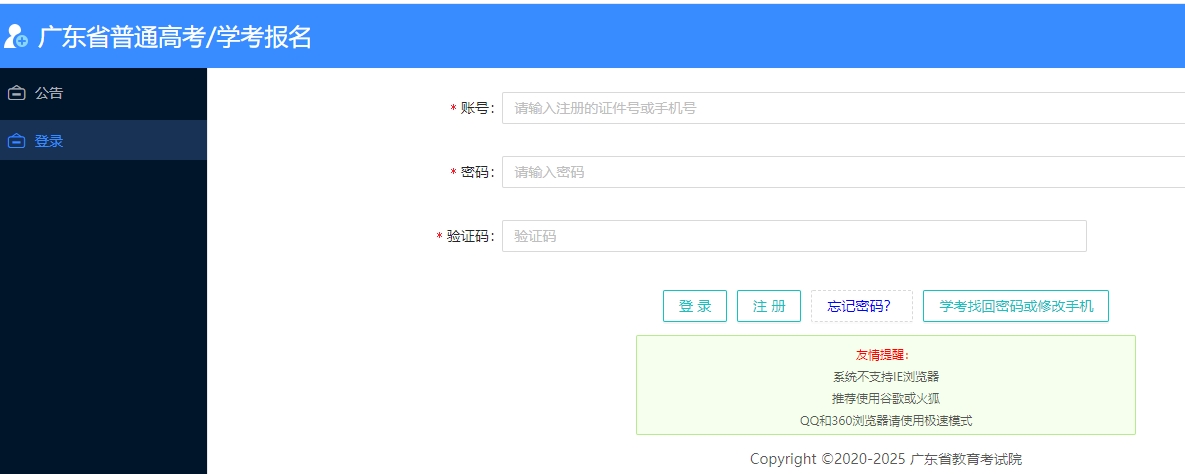 广东高考报名网址入口,为广东省教育考试院官网的登录网址: