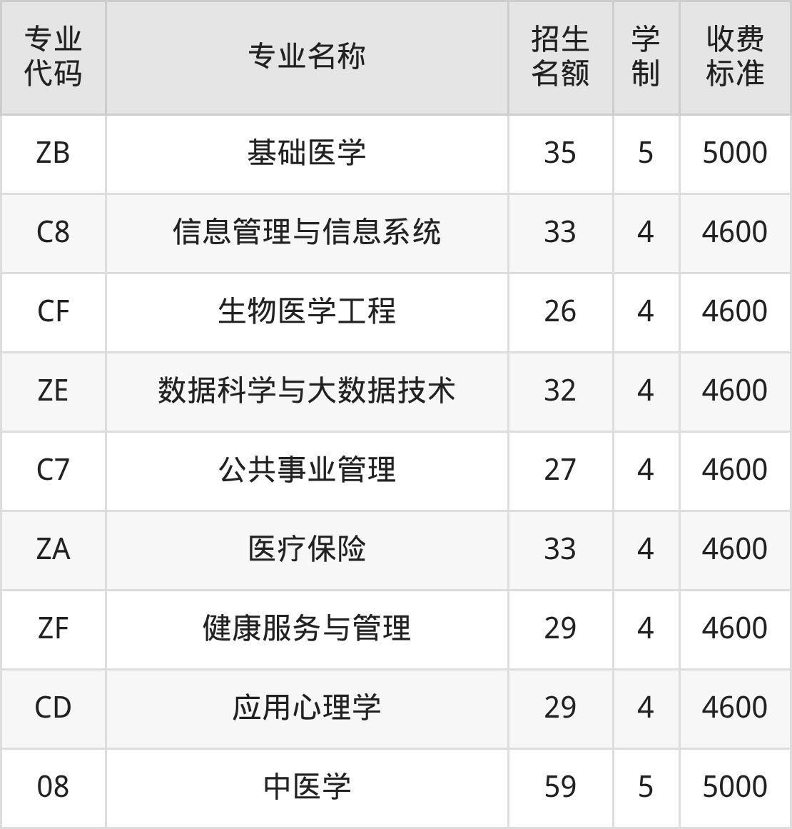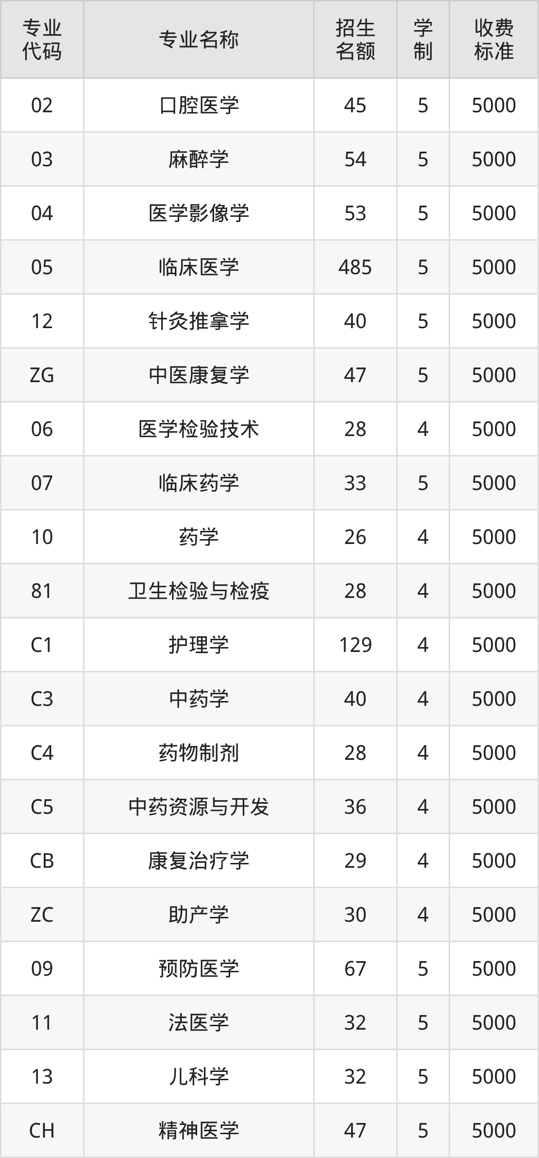 | 08 | 中医学 | 40 | 5 | 5000 |