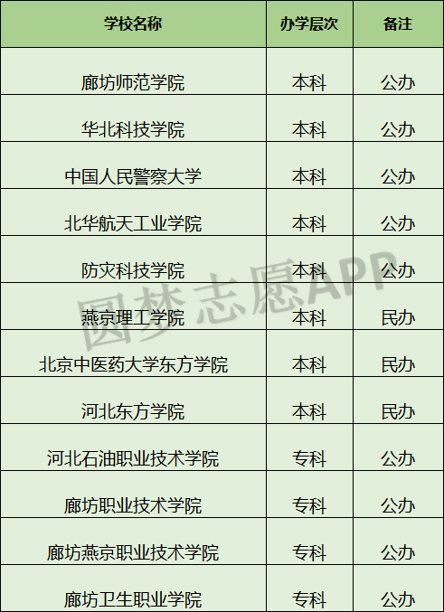 下面是廊坊所有大学名单: