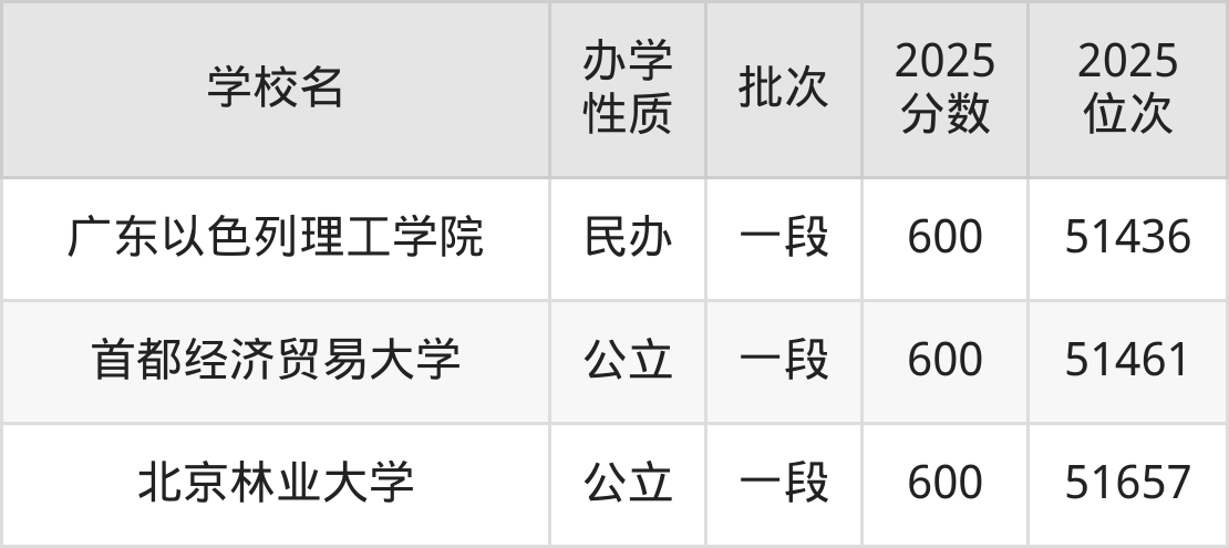 2025年浙江600分对应排名:51436名~51657名,因此建议2026年高考位次在5.2万名左右的考生报考这些学校。