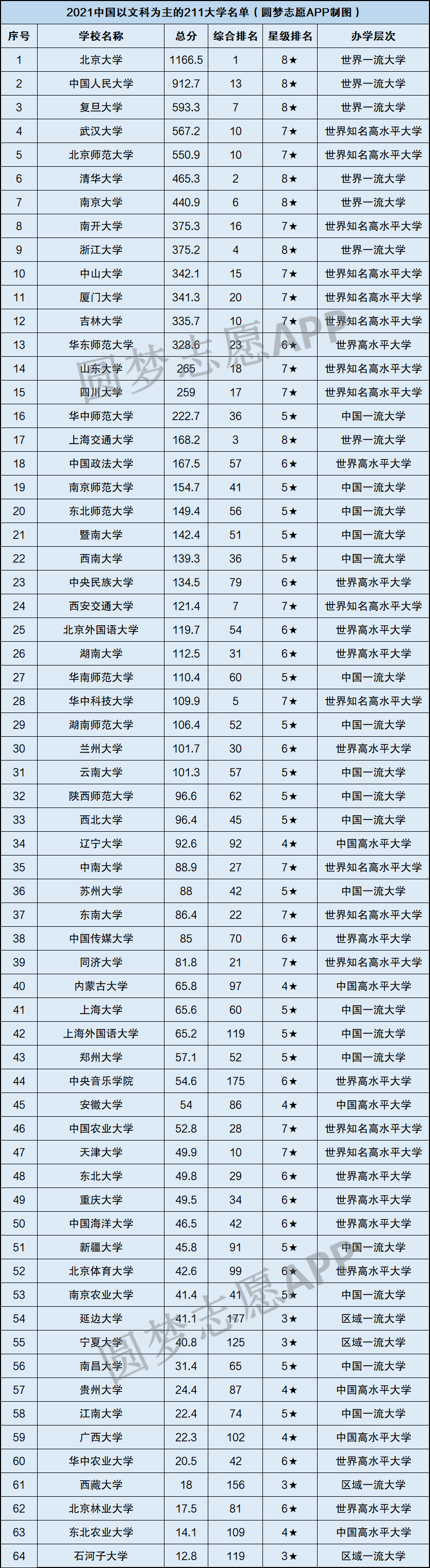 我们都知道211大学一共有112所(部分院校两地办学,所以实际为116 所)那么其中以文科为主的211大学有哪些呢?根据校友会2021中国大学文科实力排名200强,小编为大家整理好了以文科为主的211大学供大家参考,具体名单如下: