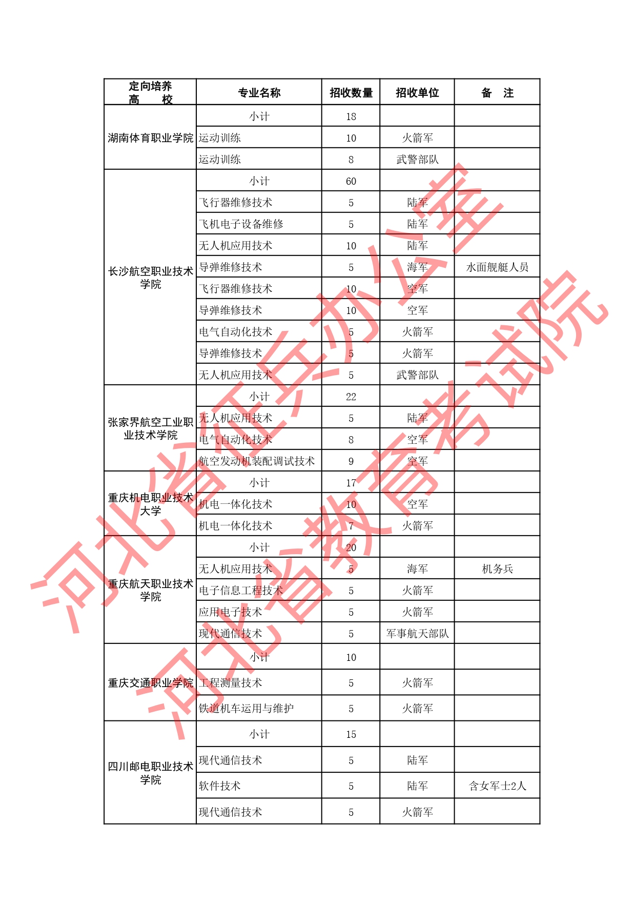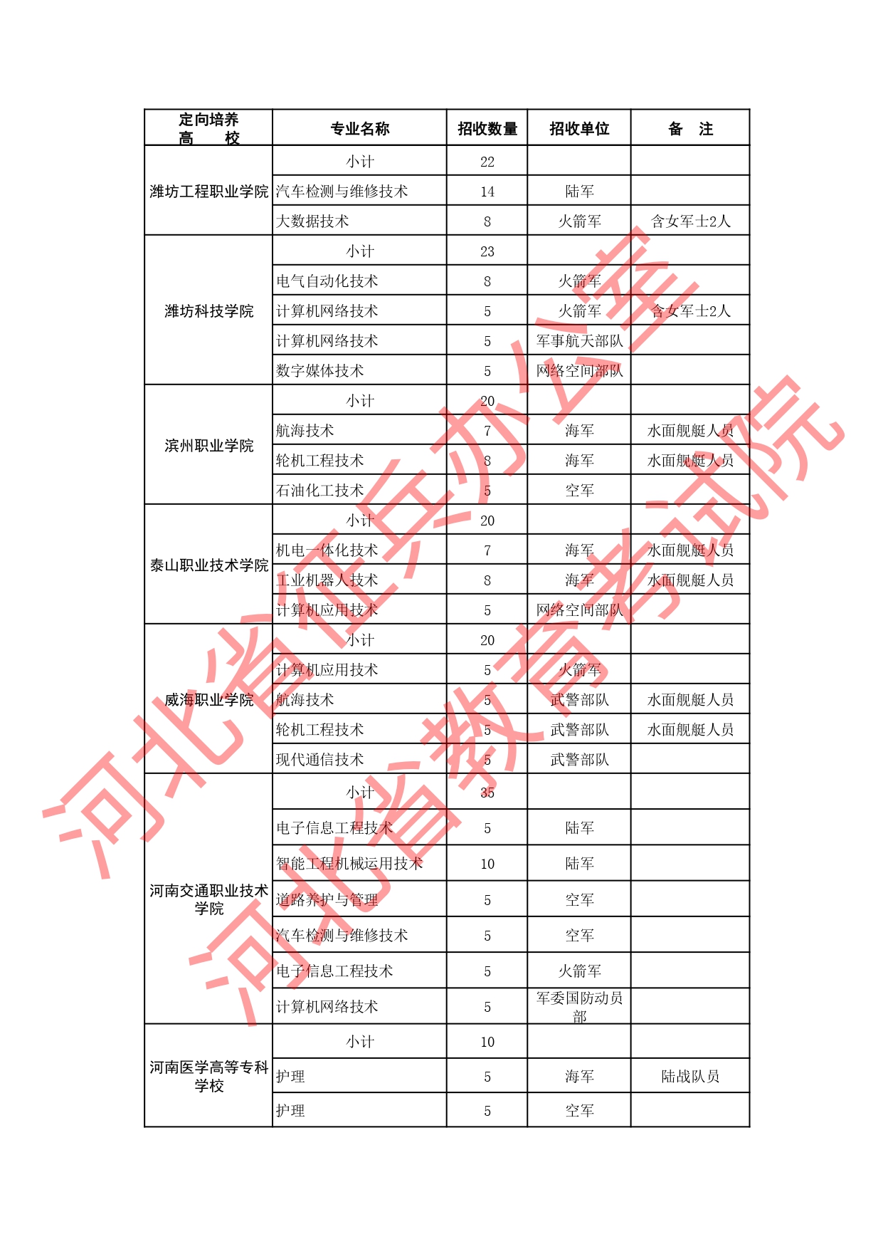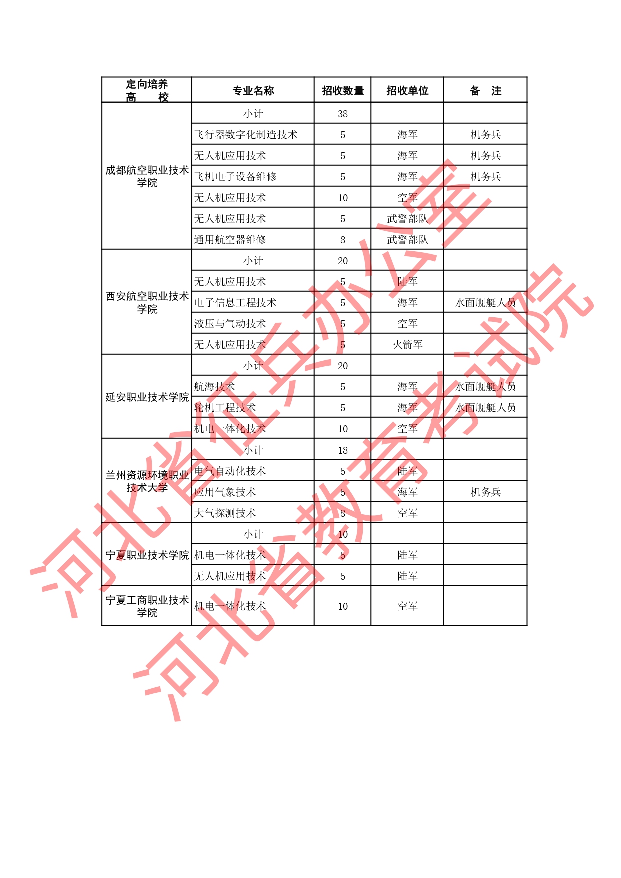| 河北定向军士院校共44所 | |