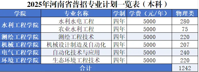 招生计划:2025年本科招生1300人,其中河南省1242人。