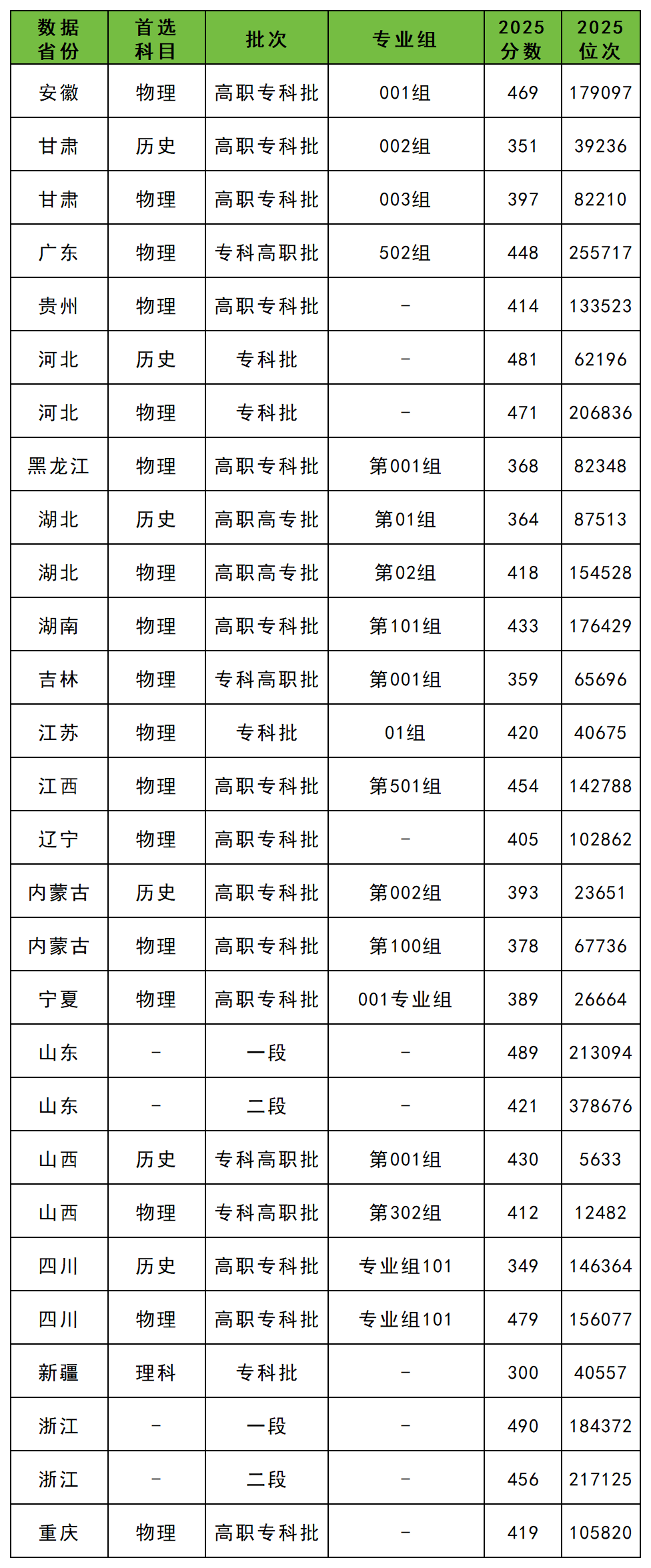 2025年黄河水利职业技术大学专科批在各省的录取分数如下: