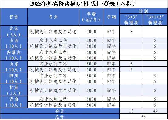 招生专业:水利水电工程、测绘工程技术、农业水利工程、生态环境工程技术、机械设计制造及自动化、自动化技术与应用。