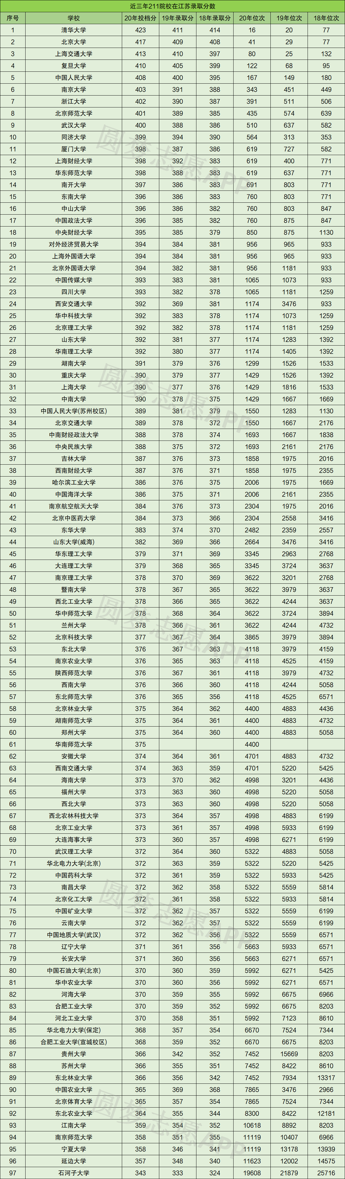 因为以往江苏省的高考分数满分仅有480分,而新高考满分为750分,我们粗略计算,在不考虑各学科之间差距与难度的前提下,将以往分数,同比例放大到750分。然后用反证法,找出近三年分数之间的变量系数△,假设△存在,计算理论情况下最后一个211院校最低录取分数线。