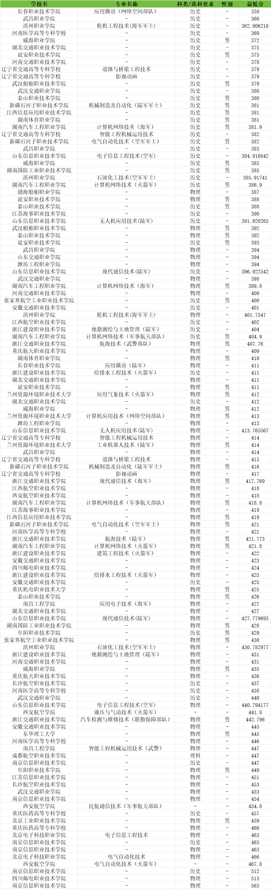 而士官学校在安徽历史的最低录取分数线则是358分,因此安徽历史类考生最低358分可以上士官学校。
