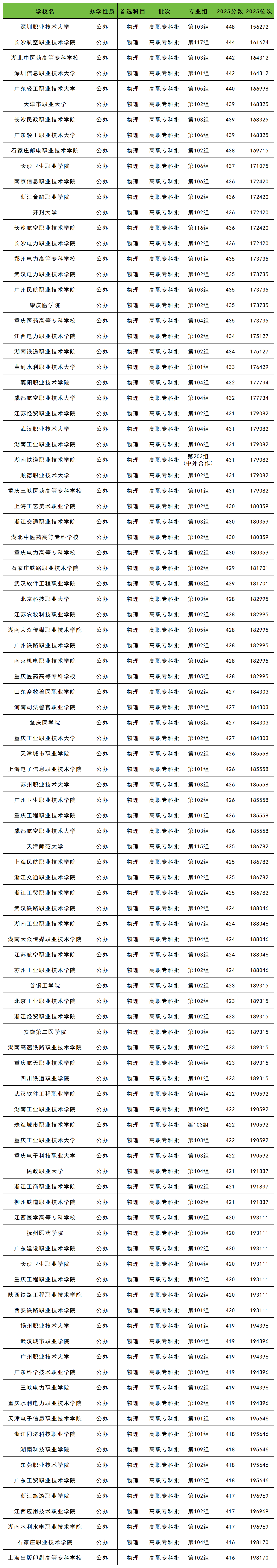 2025年湖南省专科大学的最低录取分数线是213分,对应位次排名是316489名,即2026年高考31万名左右的同学都有机会上专科批大学。