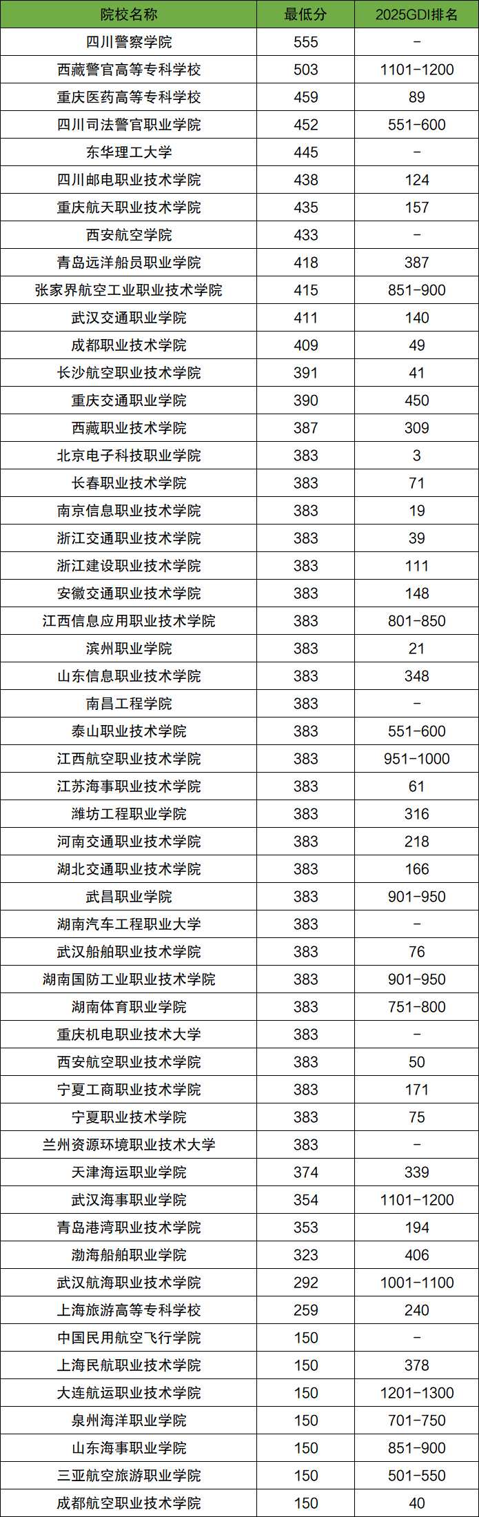 | 院校名称 | 最低分 | 2025GDI 排名 |
