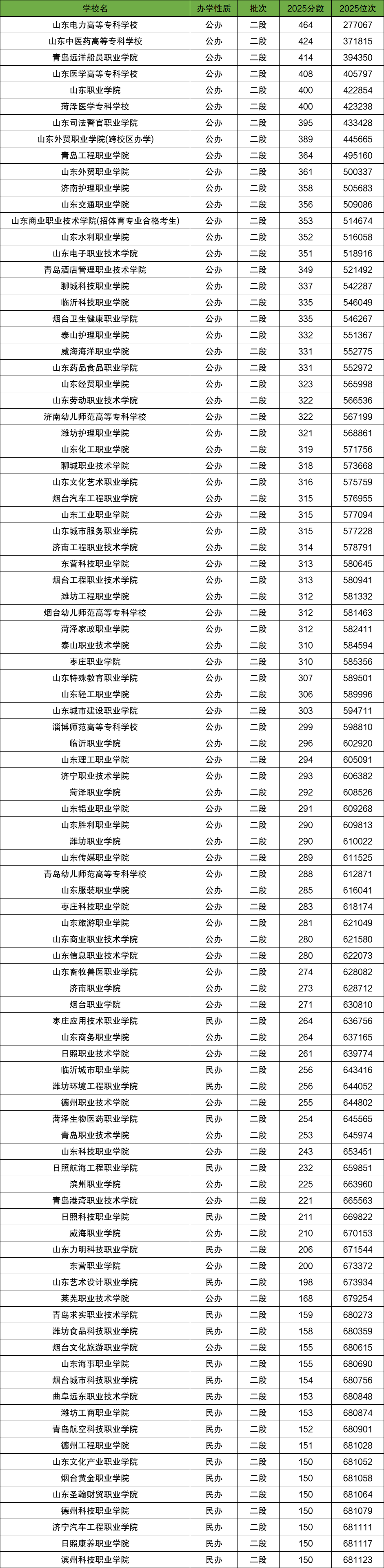 山东最低分的3所民办专科学校有:滨州科技职业学院150分、日照康养职业学院150分、济宁汽车工程职业学院150分。
