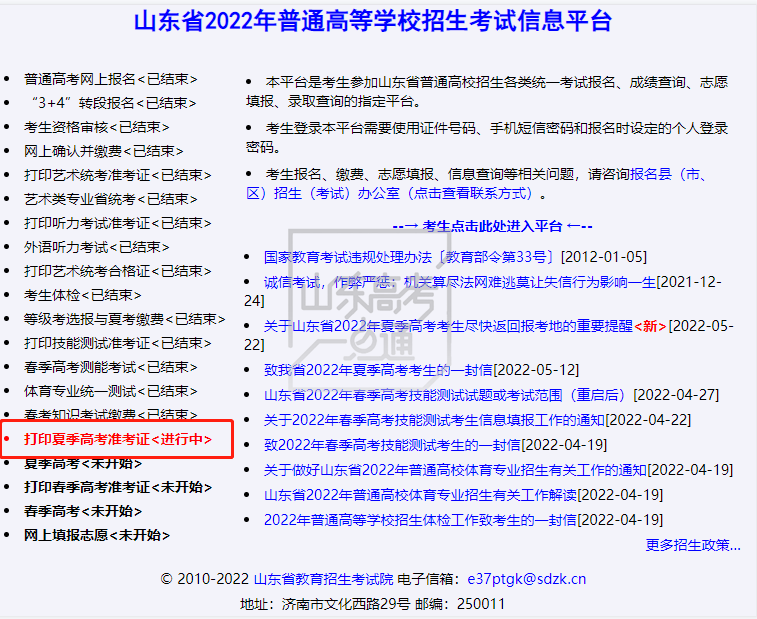 以山东省为例,为大家展示高考准考证打印的具体流程(其他省份操作大同小异)。