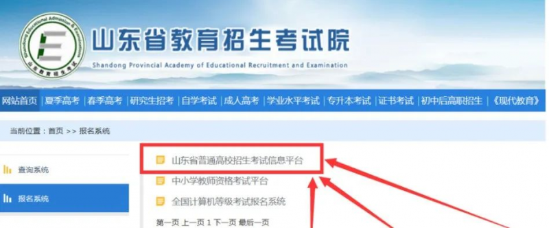2、选择山东省普通高校招生考试信息平台,如图: