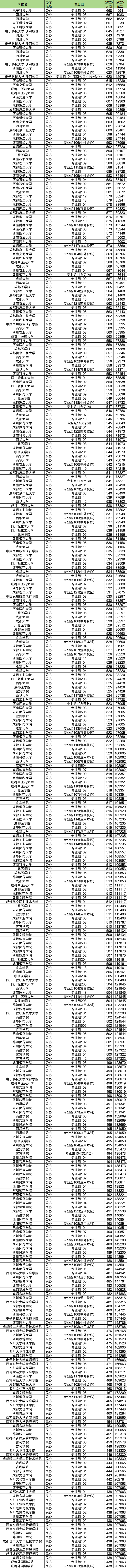 2025年四川高考各大学历史类各专业组录取分数线一览表如下: