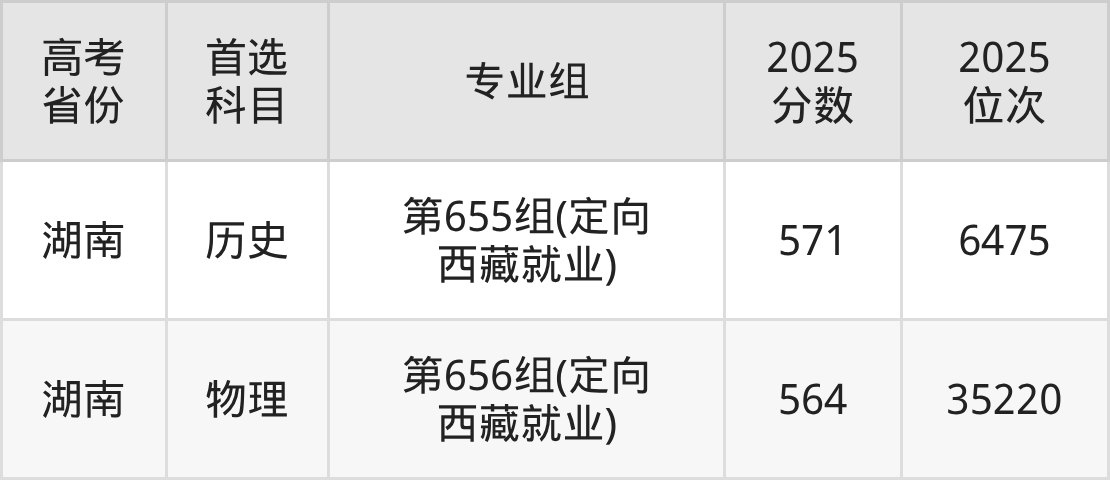 下方表格是湖南师范大学2025年在全国各省普通本科批的录取分数线汇总:
