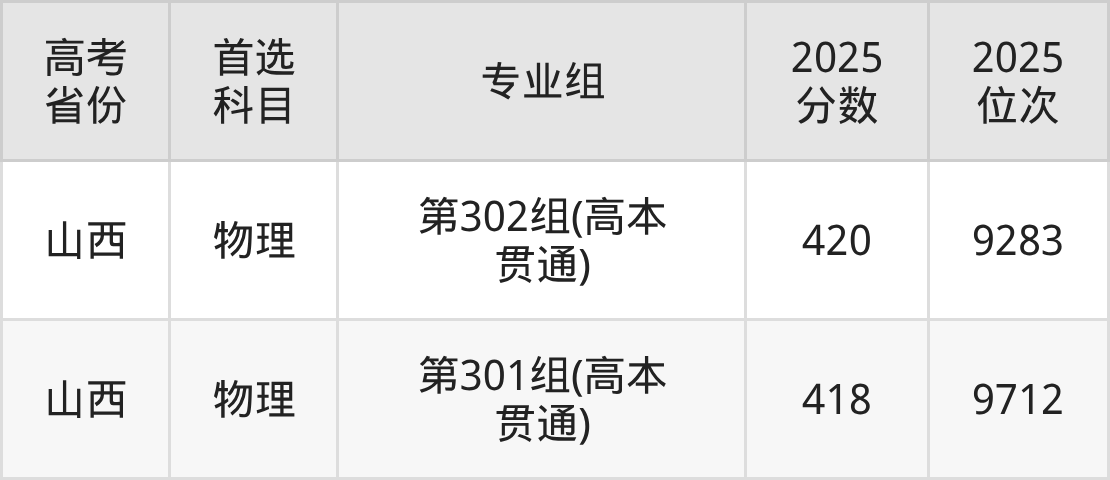| 高考 省份 | 专业组 | 选科要求 | 2025 分数 | 2025 位次 |