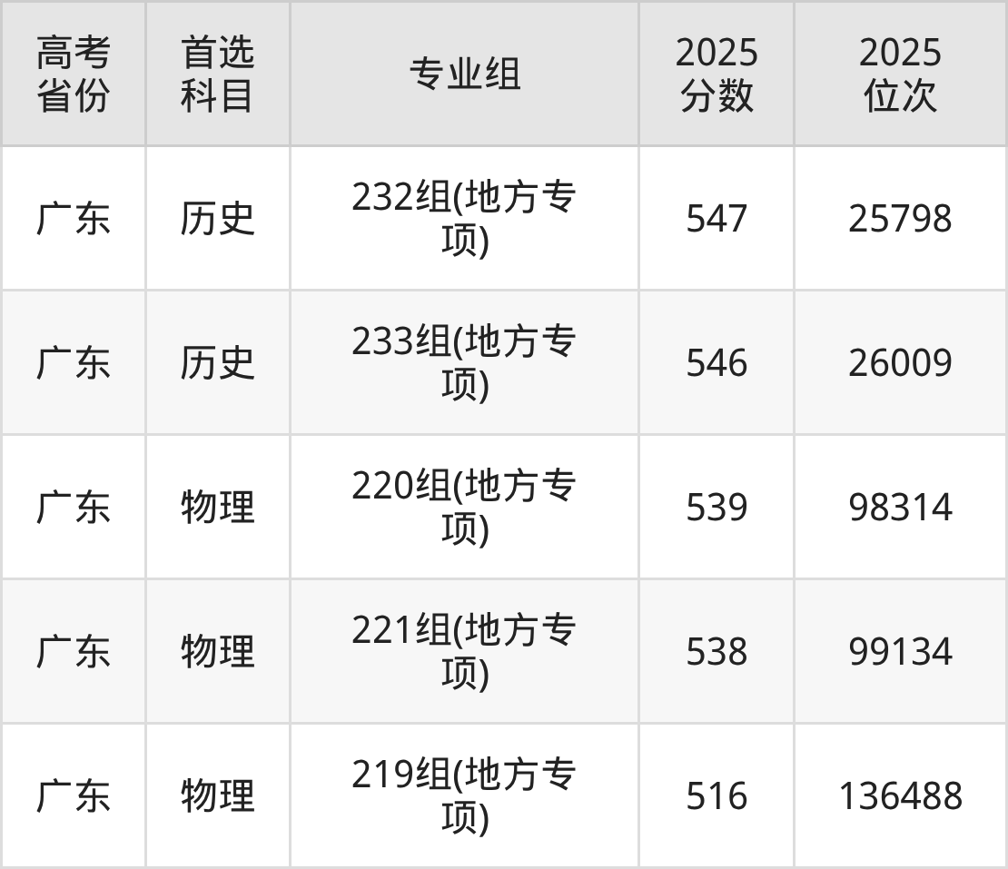 | 高考 省份 | 专业组 | 选科要求 | 2025 分数 | 2025 位次 |
