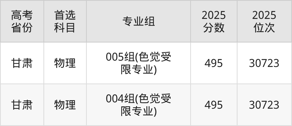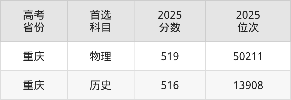 | 高考 省份 | 专业组 | 选科要求 | 2025 分数 | 2025 位次 |