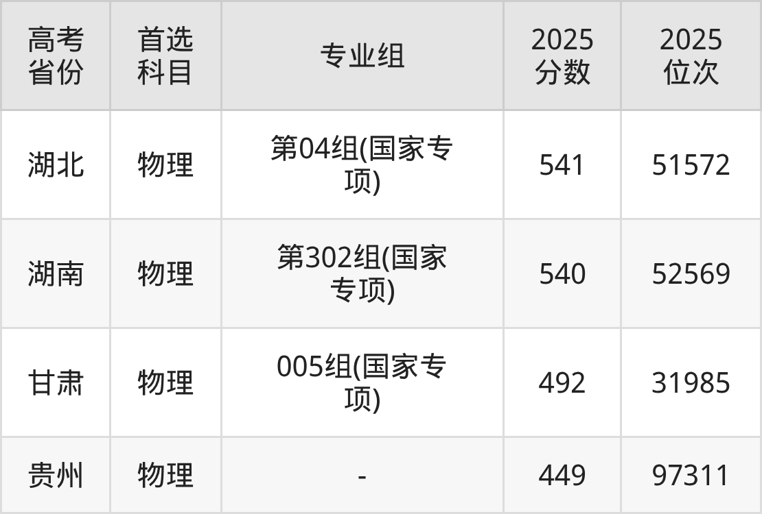 | 高考 省份 | 专业组 | 选科要求 | 2025 分数 | 2025 位次 |