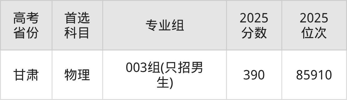 | 高考 省份 | 专业组 | 选科要求 | 2025 分数 | 2025 位次 |