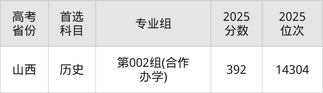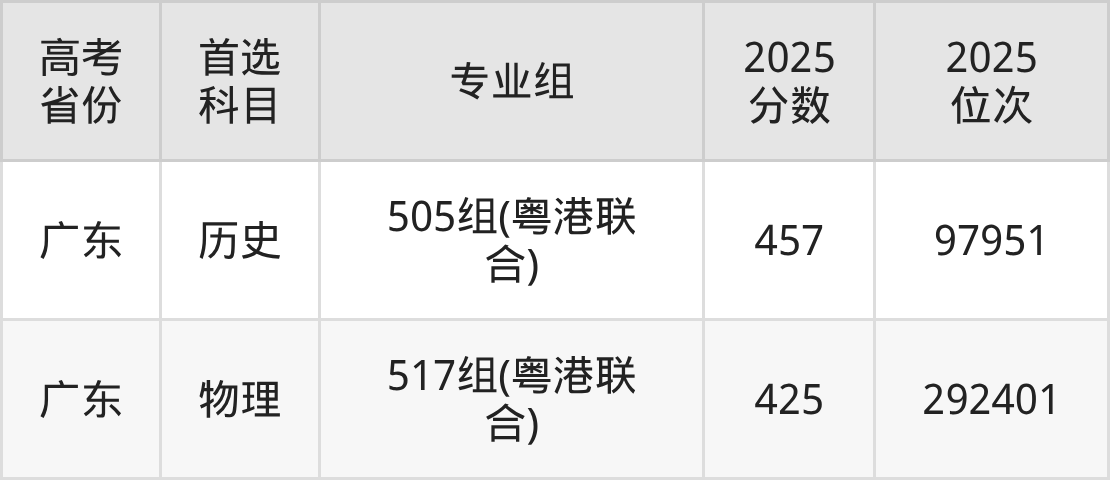 | 高考 省份 | 专业组 | 选科要求 | 2025 分数 | 2025 位次 |