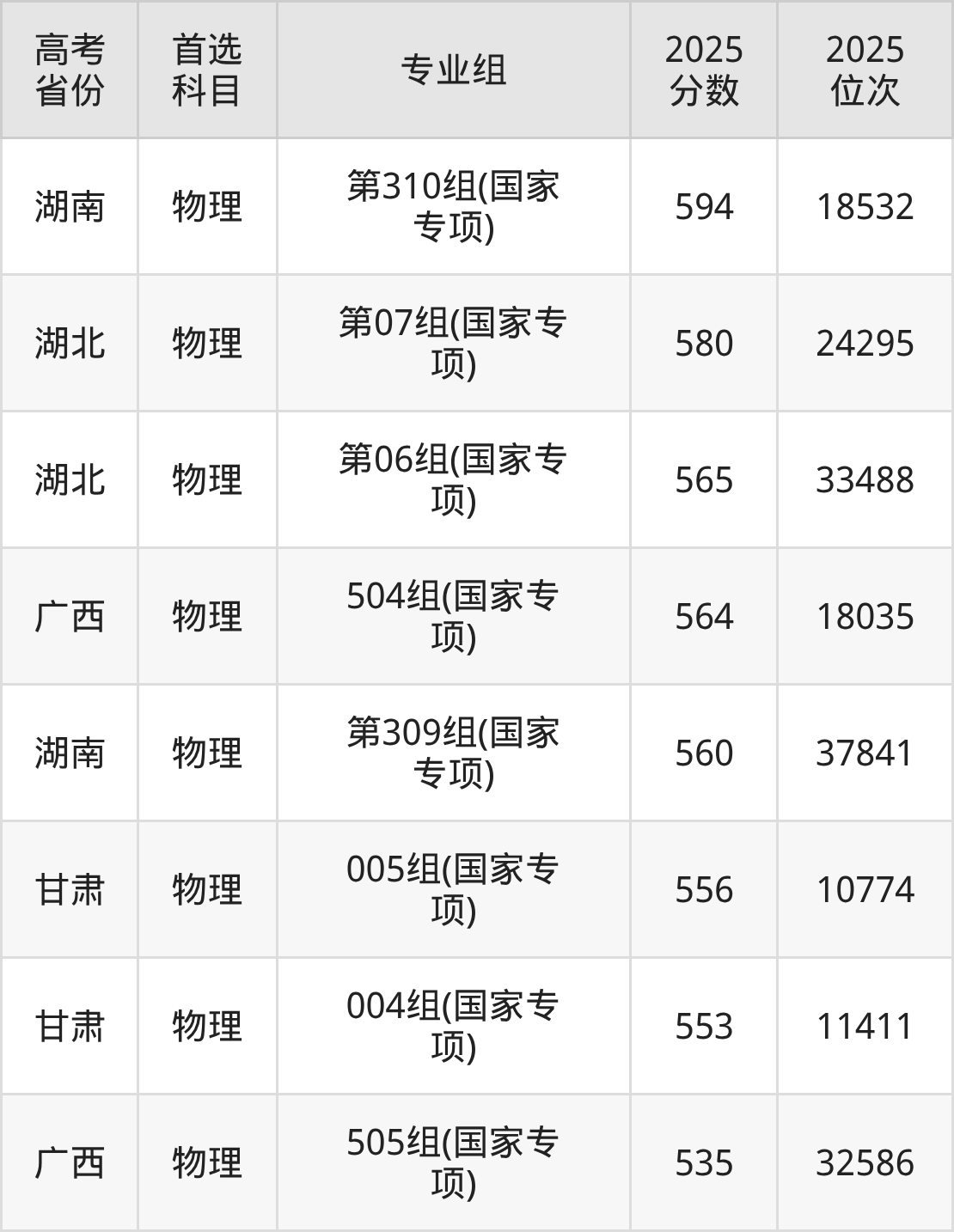 | 高考 省份 | 专业组 | 选科要求 | 2025 分数 | 2025 位次 |