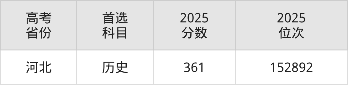 | 高考 省份 | 专业组 | 选科要求 | 2025 分数 | 2025 位次 |