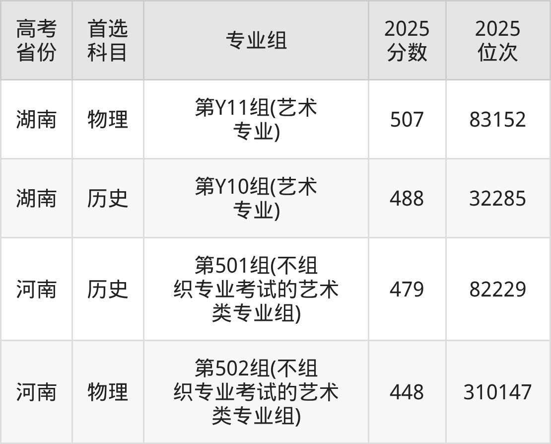 下方图片展示的是四川传媒学院艺术专业2025年录取分数线汇总:
