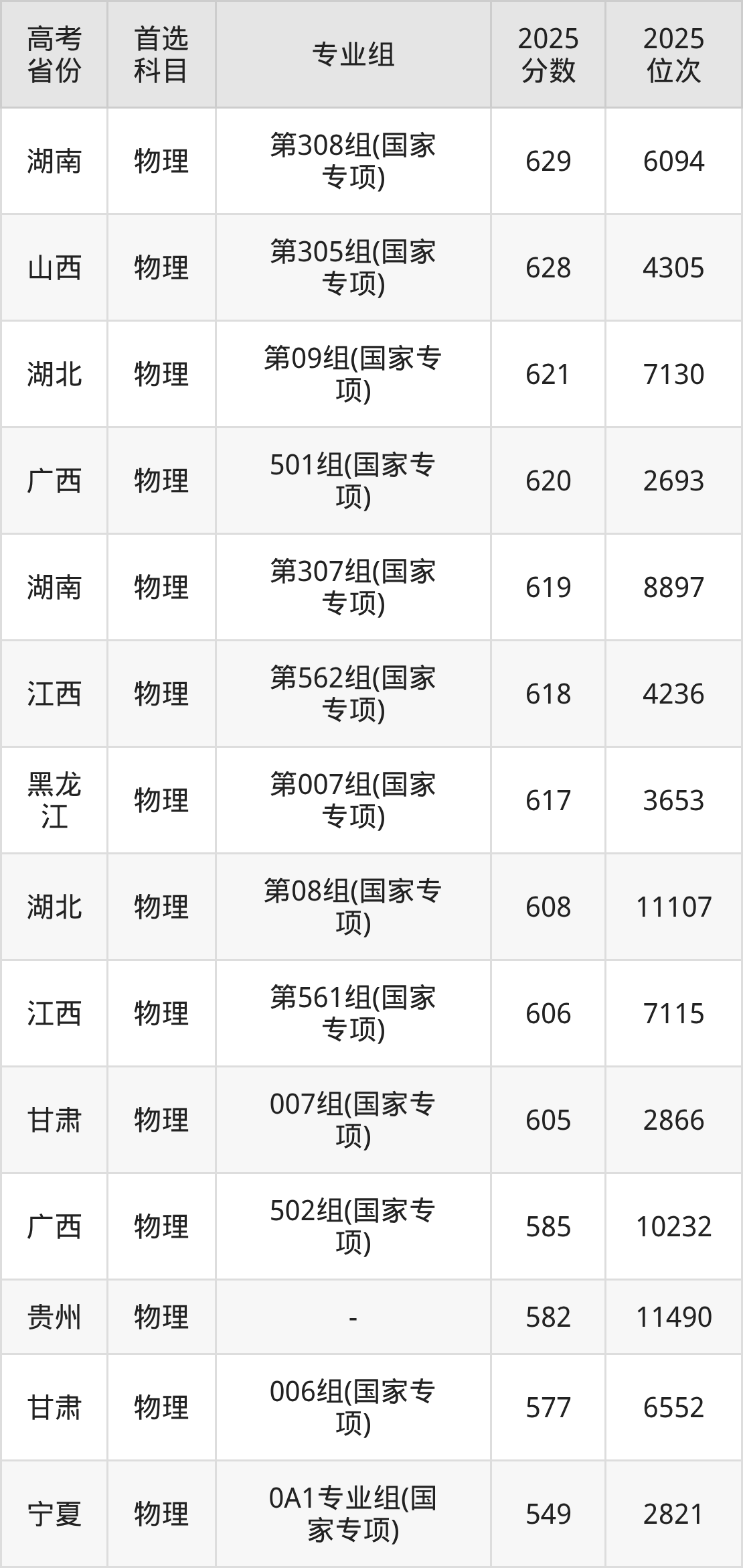 下方图片展示的是北京邮电大学国家专项2025年录取分数线汇总: