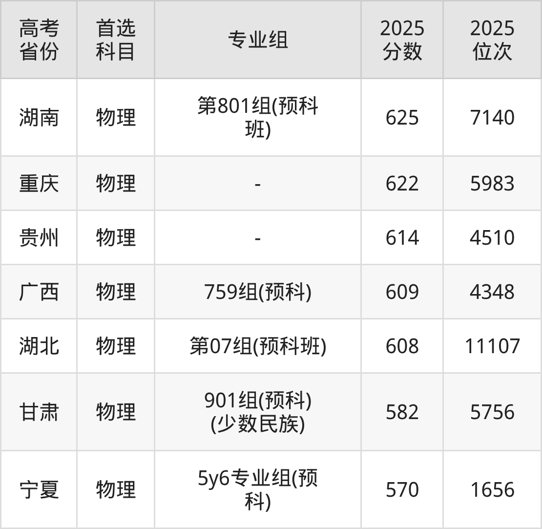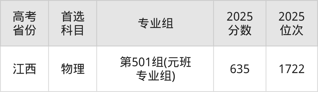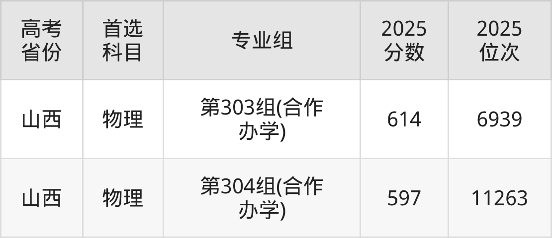 | 高考 省份 | 专业组 | 选科要求 | 2025 分数 | 2025 位次 |