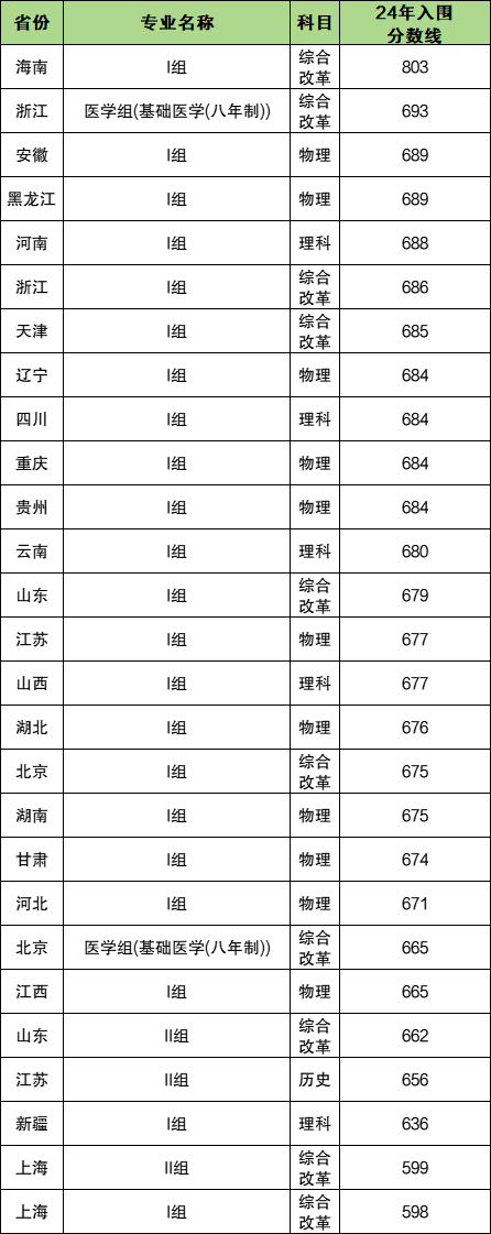 在高考满分750分的省份中,入围分数最高的省份为浙江,2024年分数为693分,对应医学组(基础医学(八年制))专业;而入围分最低的省份是新疆,2024年分数为636分,对应I组。
