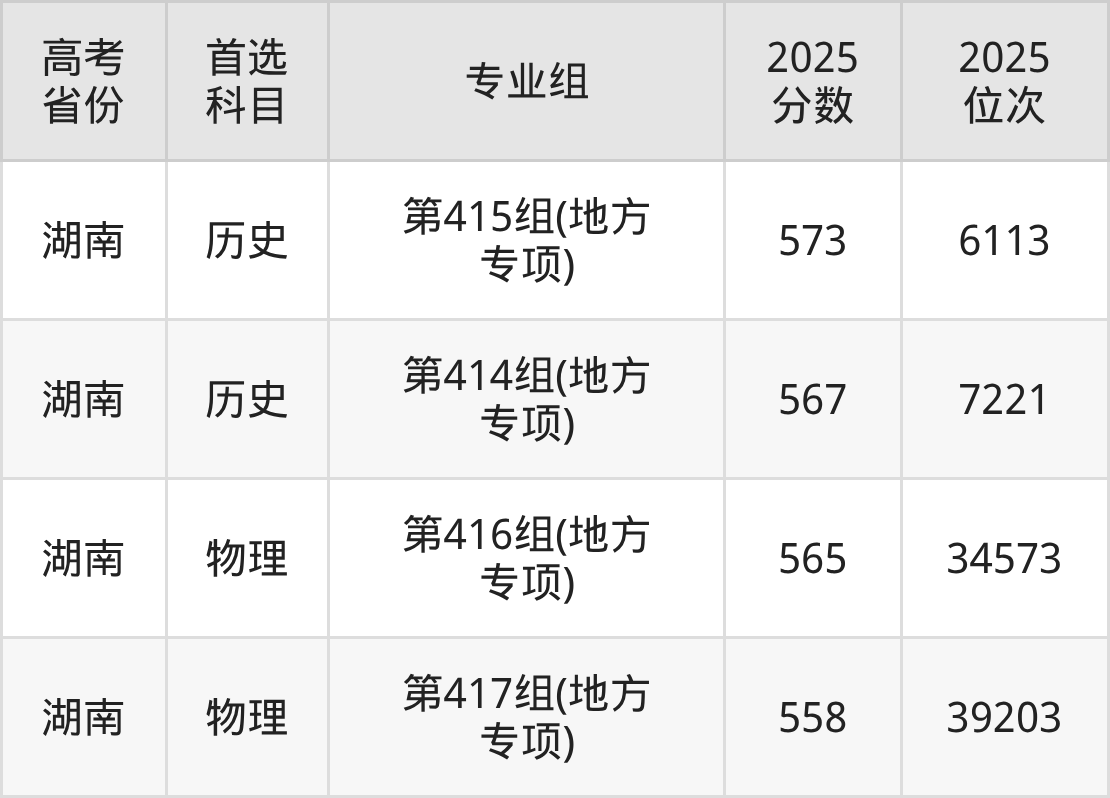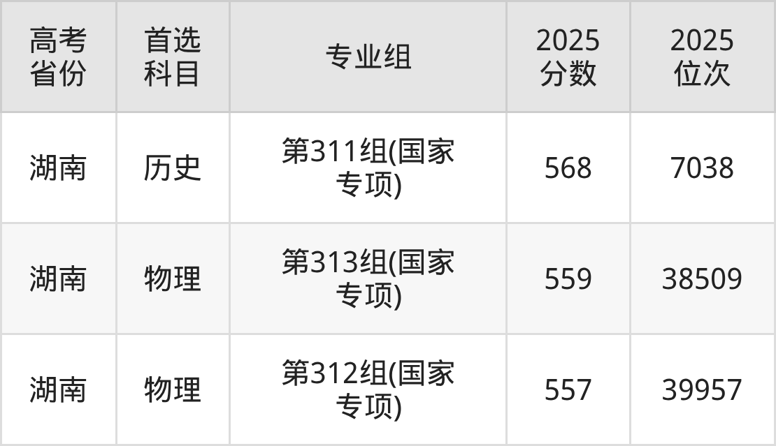 | 高考 省份 | 专业组 | 选科要求 | 2025 分数 | 2025 位次 |