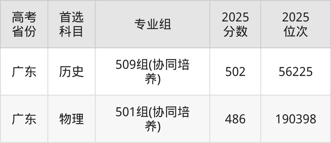 | 高考 省份 | 专业组 | 选科要求 | 2025 分数 | 2025 位次 |