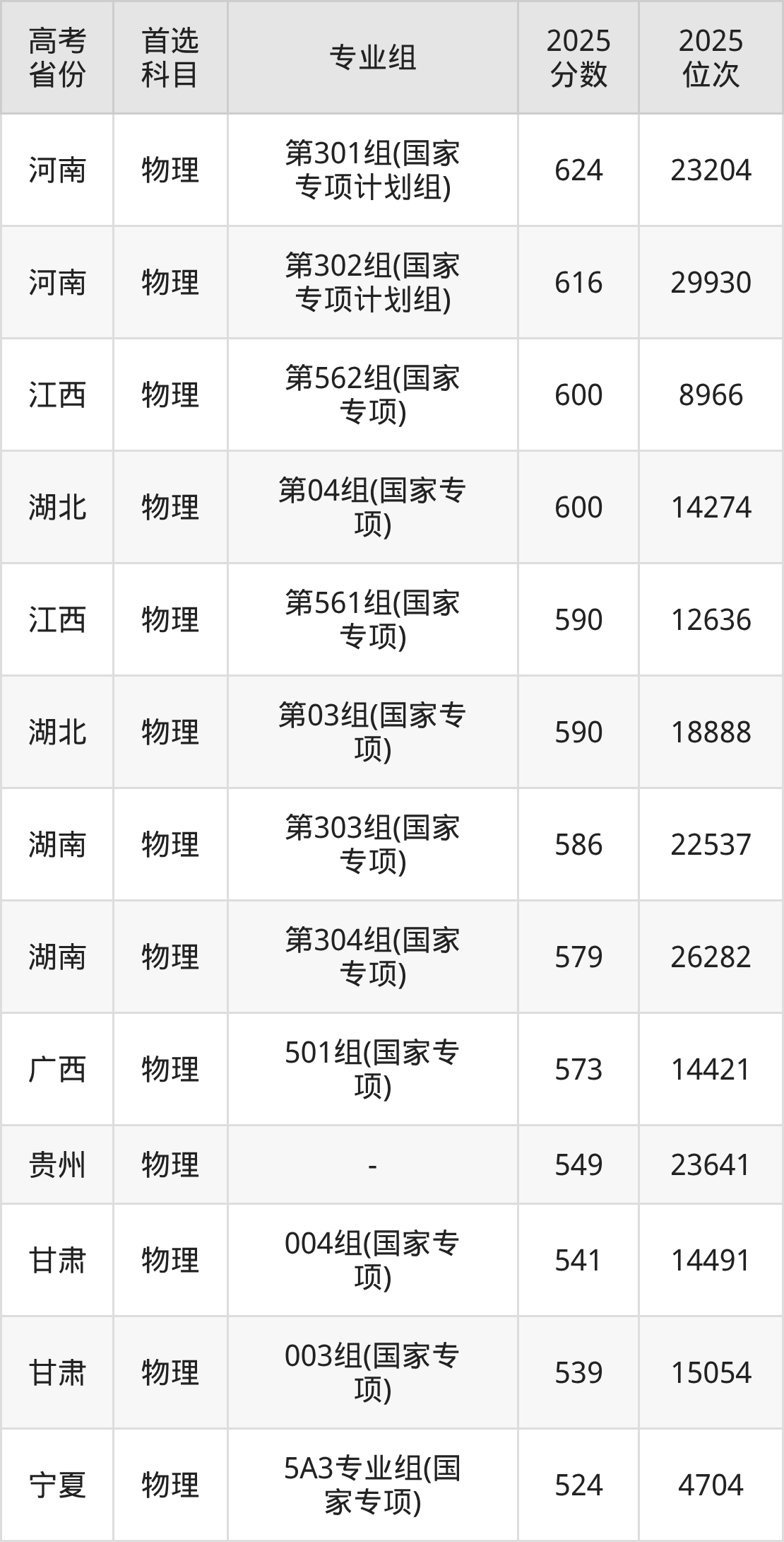 下方图片展示的是南京理工大学国家专项2025年录取分数线汇总: