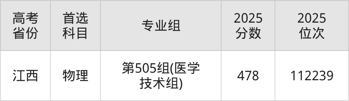 以2025年江西高考为例,南昌医学院医学技术组物理类的最低分是478分、普通本科批物理类的最低分是473分。与普通本科批相比,医学技术组的最低分升高了5分。