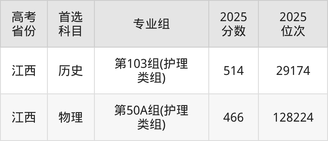 下方图片展示的是南昌医学院护理类2025年录取分数线汇总: