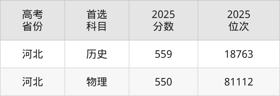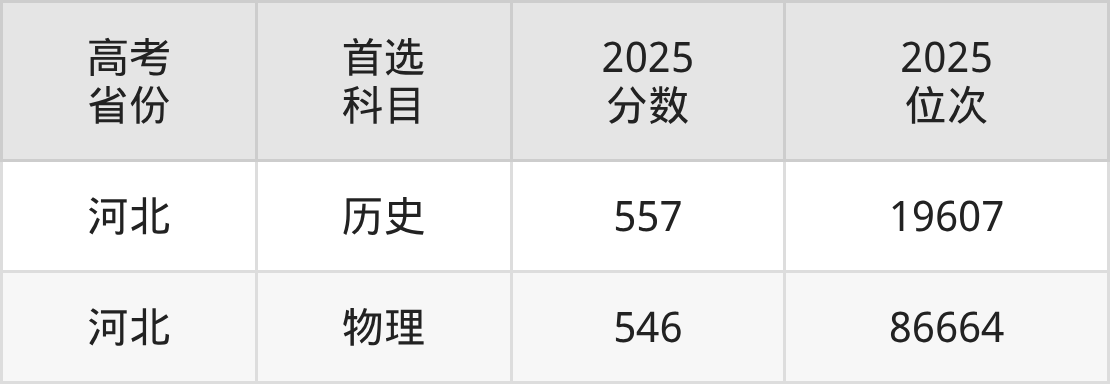 | 高考 省份 | 专业组 | 选科要求 | 2025 分数 | 2025 位次 |