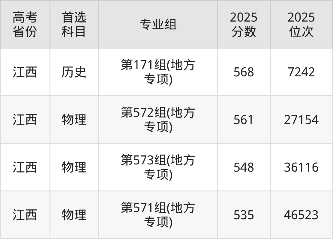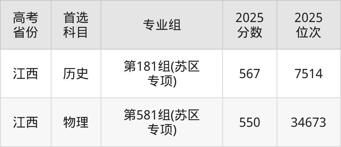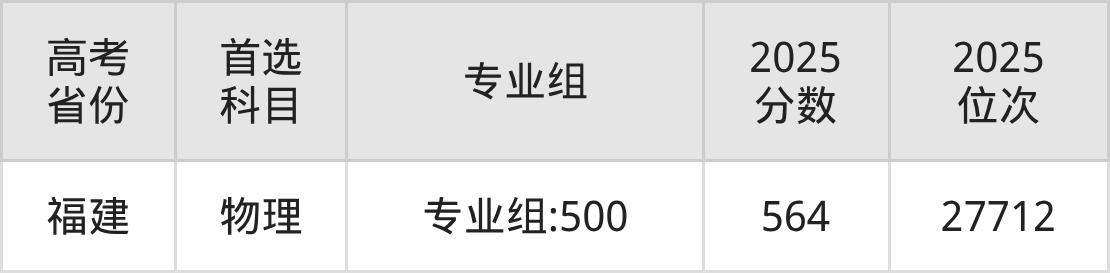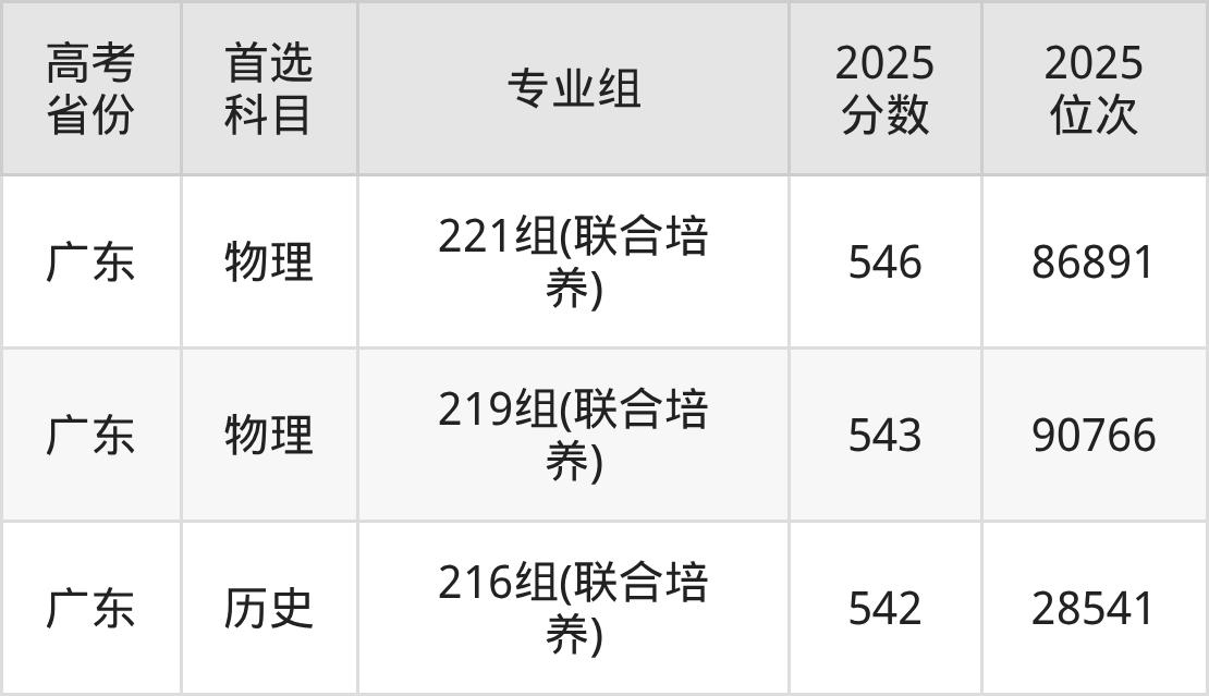 | 高考 省份 | 专业组 | 选科要求 | 2025 分数 | 2025 位次 |
