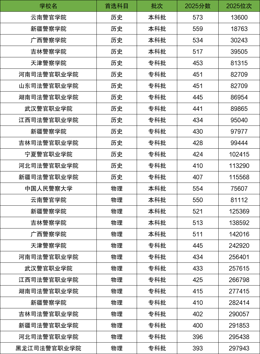 根据高考省份2025年分数线来看,不同省份的分数线差异较大。对于本科批次警校来说,首选历史类分数线在550分是可以稳上警校的;首选物理类分数线在500分是可以稳上警校的。对于在专科批次录取的警校,分数在400分就可以上。